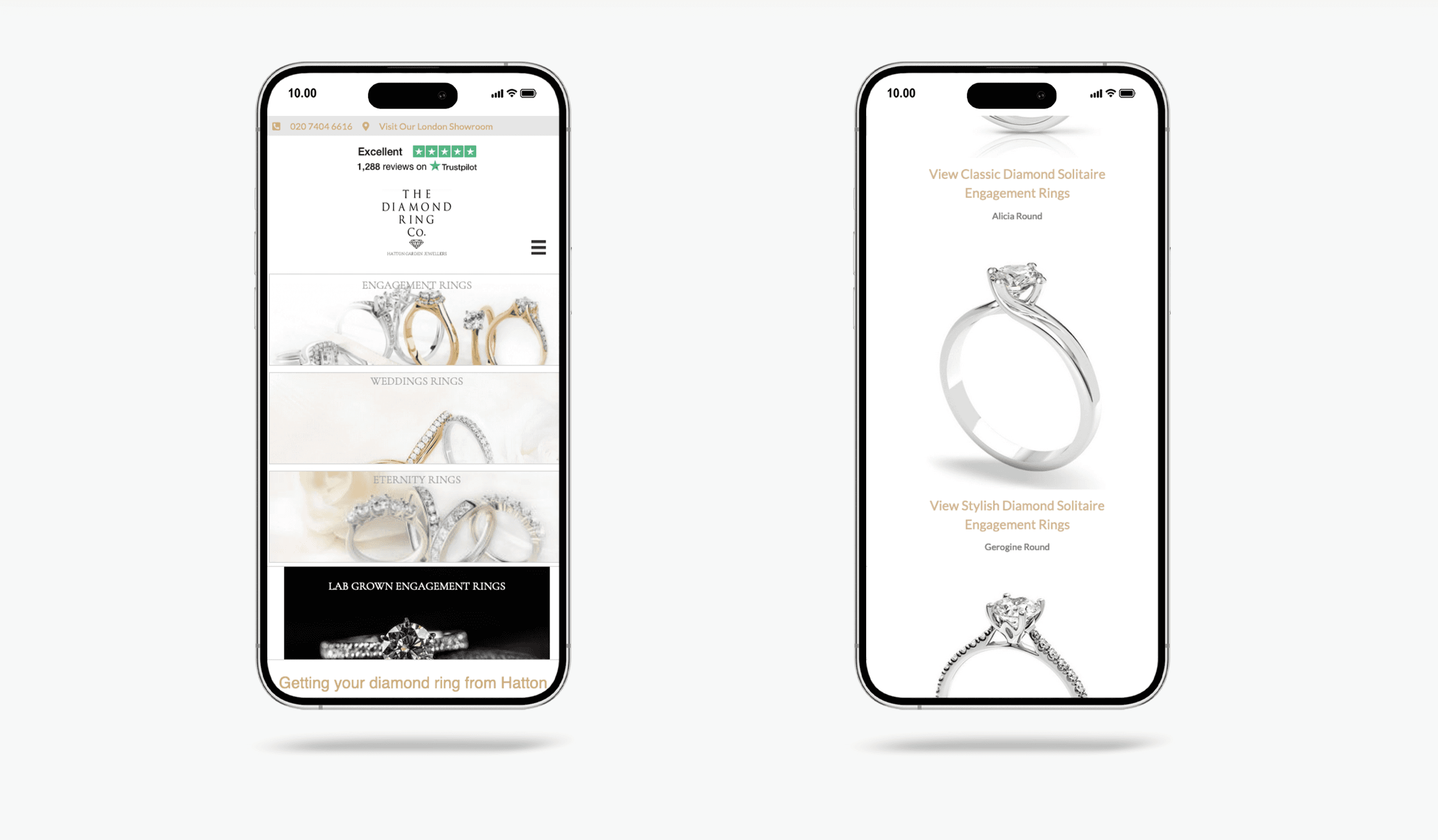 Diamond Ring Co. approached us with the need for a refined e commerce platform that presents their diamond collections with clarity and sophistication. They wanted a design that elevates the visual impact of each piece, combining high quality imagery with clear product details to help customers make confident purchasing decisions. The experience needed to feel premium, elegant and trustworthy.