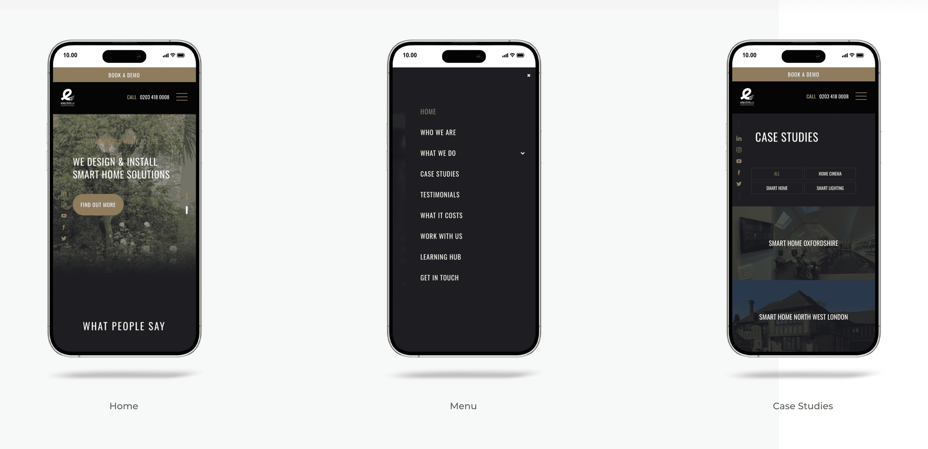The custom content management system and tailored landing page tools give Electricus Audio Visual complete control over their digital presence. The website is fully responsive, easy to update and built for future scalability. The final product offers a harmonious blend of visual impact and functional efficiency, successfully supporting both brand positioning and operational needs.