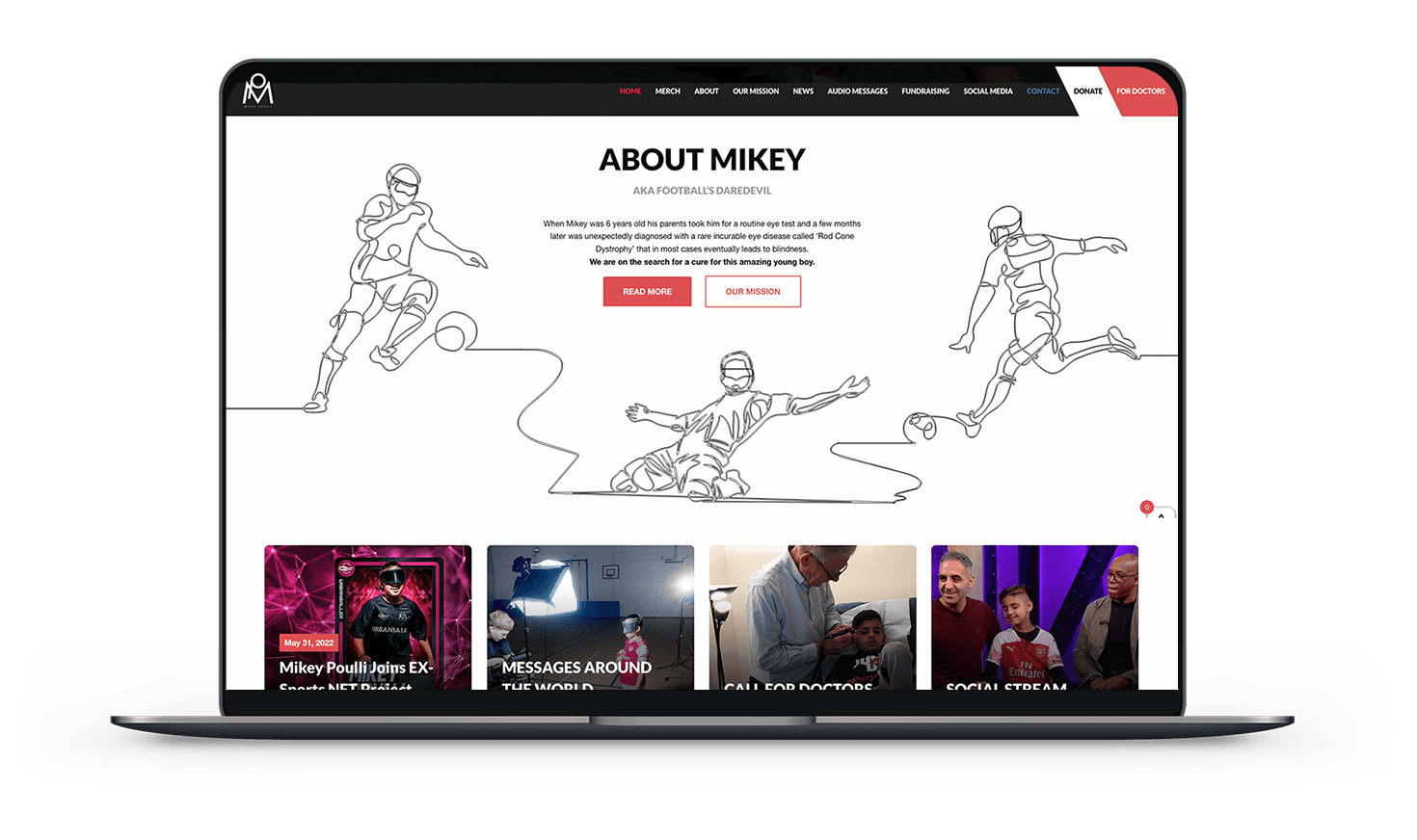 Mikey Poulli and his team approached us with the need for a digital identity that reflects his inspirational story and growing public presence. They wanted a visual brand that communicates positivity and ambition while remaining clean and modern. The website needed to introduce Mikey, highlight his journey and provide a central space for fans and supporters to learn more about his achievements.