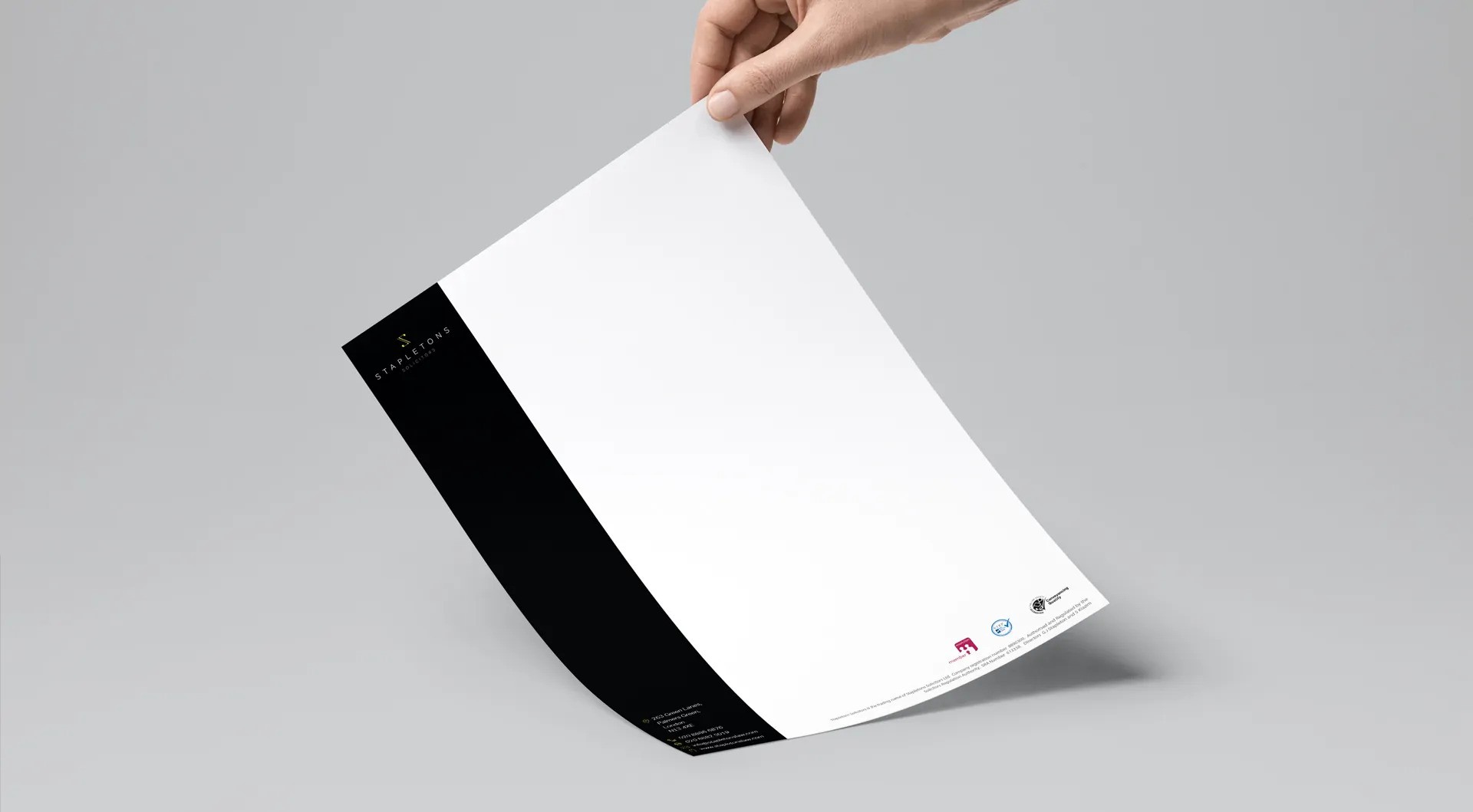 Stapletons Law approached us with the need to revitalise their brand identity while maintaining the integrity and trust associated with their established reputation. They wanted a look that feels modern but still carries the formal and dependable character expected from a legal practice. The updated identity needed to be applied consistently across stationery, printed materials and office signage.